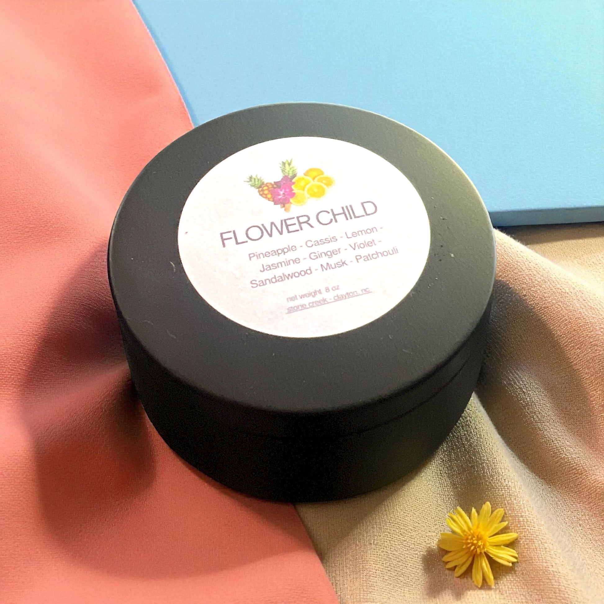Flower Child is sunshine, sound waves, and a little bit of rebellion bottled up. Bright pineapple, lemon, and pear burst open first — sweet, juicy, and free. Then it drifts into soft jasmine, violet, and a cool hit of peppermint leaf that keeps things unexpected. Grounded by sandalwood, cedar, musk, and patchouli, it’s the perfect mix of wild and grounded — vintage soul with modern swagger.
